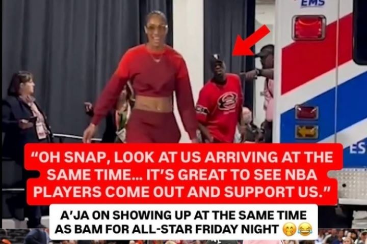 体育资讯07月20日讯 WNBA全明星,阿贾-威尔逊与阿德巴约穿着红色着装一前一后进场。