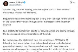 体育资讯11月13日讯 因支持巴勒斯坦而遭美因茨不当解约的埃尔加齐今日发布社媒,宣告自己对美因茨的官司再度胜诉。
