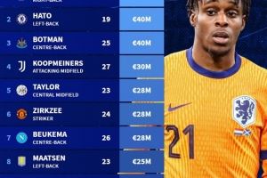 落选本期荷兰国家队球员身价榜:弗林蓬4500万欧居首,哈托次之