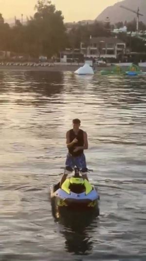 抽象🤣怀森晒度假视频,在摩托艇上跳起魔性舞蹈🕺🏽